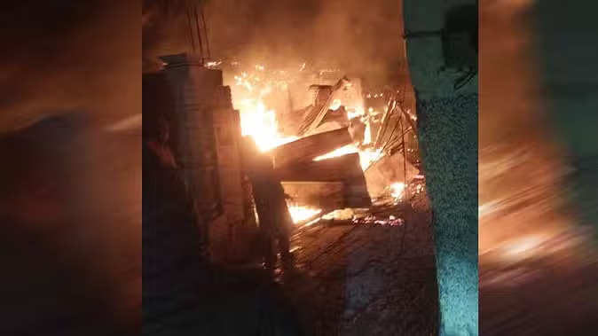आग करीब दो बजे के अचानक भड़की। देखते ही देखते मकान और दुकान जल कर स्वाहा हो गए। स्थानीय लोगों और फायर ब्रिगेड की कड़ी मशक्कत के बाद आग पर काबू पाया।