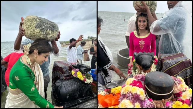 एक फोटो में रवीना टंडन अपनी बेटी राशा के साथ समंदर किनारे भोलेनाथ के दर्शन करती हुई दिखाई दे रही हैं। दोनों को भोलेनाथ की पूजा-अर्चना करते हुए देखा गया। साथ ही मां-बेटी ने ढेर सारी फोटोज भी क्लिक कराईं। रवीना बेज कलर की साड़ी के साथ ग्रीन ब्लाउज में बेहद खूबसूरत लग रही थीं। उन्होंने अपने लुक को गजरे से पूरा किया था। वहीं, राशा पिंक और गोल्डन कलर से सलवार-सूट में सुंदर दिख रही थीं।