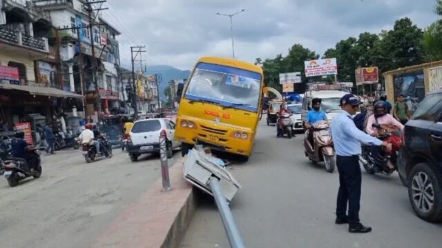 Uttarakhand News, 18 September 2023: हल्द्वानी: नैनीताल के हल्द्वानी में एक प्राइवेट स्कूल के बच्चों से भरी बस हादसे का शिकार होते-होते बच गई. तिकोनिया चौराहे के पास बच्चों से भरी स्कूल बस बेकाबू होकर डिवाइडर के ऊपर चढ़ गई. हादसे के बाद बस में सवार बच्चों के बीच चीख पुकार मच गई. स्थानीय लोगों ने तुरंत बस से बच्चों का रेस्क्यू किया. देखते ही देखते हादसे के कारण सड़क पर लंबा जाम लग गया. गनीमत रही कि हादसे में कोई जनहानि नहीं हुई. हादसे के बाद से सभी बच्चे डरे सहमे हुए हैं.