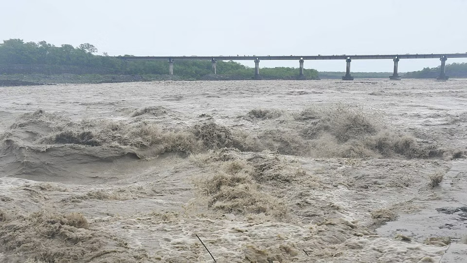 लगातार हो रही बारिश से गौला नदी उफान पर आ गई है। सोमवार को गौला नदी का जलस्तर 37207 क्यूसेक पहुंच गया जबकि खतरे का निशान 10 हजार क्यूसेक है। गौला उफनाने से रेलवे ट्रैक की सुरक्षा के लिए बनाई ग्रैविटी वॉल का कार्य प्रभावित हुआ है। हालांकि पानी के बहाव से ग्रैविटी वॉल को नुकसान नहीं हुआ है पर नदी के बहाव से वॉल बनाने के लिए रखे सीमेंट के 900 कट्टे बहने के साथ चार जेरनेटर पानी में डूब गए। सुरक्षा दीवार के दोनों तटबंध गौला नदी में जमीदोंज हो गए।