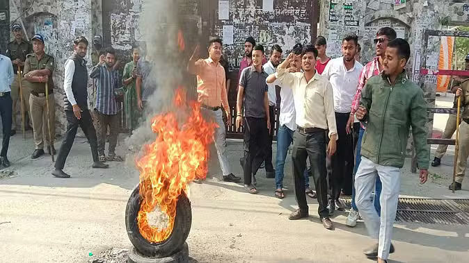 Uttarakhand News 30 oct 2024: छात्रसंघ चुनाव कराने की मांग को लेकर एमबीपीजी कॉलेज में छात्रों ने सरकार के खिलाफ धरना-प्रदर्शन किया। उन्होंने उच्च शिक्षा मंत्री का पुतला भी जलाया। मौके पर मौजूद फायर पुलिस के जवानों ने अनहोनी की आशंका को देखते हुए पुतला बुझा दिया। इसके बाद छात्रों ने पुलिस के खिलाफ नारे लगाकर आक्रोश प्रकट किया। उन्होंने शीघ्र मांग पूरी नहीं होने पर उग्र आंदोलन की चेतावनी दी है।