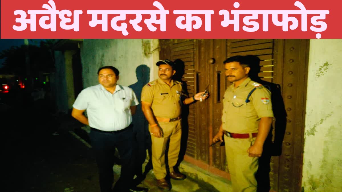 मदरसे की संचालिका गिरफ्तार: अवैध रूप से चल रहे मदरसे को सीज कर दिया गया. मौके से इसकी संचालिका खातून बेगम नाम की महिला को गिरफ्तार किया गया. पूछताछ में खातून ने बताया कि मदरसे को उसका पति इरशाद और वह मिल कर संचालित करते थे. आरोपियों के खिलाफ मुकदमा दर्ज कर लिया गया है. पुलिस टीम फरार आरोपी की गिरफ्तारी के प्रयास कर रही है.