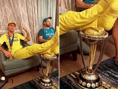 Mitchell Marsh Legs Over World Cup: 19 नवंबर (रविवार) को अहमदाबाद में भारत पर सात विकेट से जीत के बाद ऑस्ट्रेलियाई ऑलराउंडर मिशेल मार्श को कथित तौर पर प्रतिष्ठित विश्व कप ट्रॉफी का अपमान करते देखा गया. सोशल मीडिया पर सामने आई एक तस्वीर में, वेस्ट ऑस्ट्रेलियन को ट्रॉफी पर अपने पैर रखते हुए देखा गया और उसे नेटिज़न्स की आलोचना का सामना करना पड़ा. मार्श, जो ऑस्ट्रेलिया की 2015 विश्व कप विजेता टीम का भी हिस्सा थे. भारत के खिलाफ रविवार को तेज-तर्रार रन-ए-बॉल 15 रन बनाए और फिर स्टंप के पीछे से केएल राहुल को जसप्रित बुमरा की गेंद पर अपना विकेट गवां बैठे. इस बीच मार्श की तस्वीर खूब वायरल हो रही है. नीचे आप देख सकतें हैं. बता दें की फाइनल मैच ऑस्ट्रेलिया ने भारत को 6 विकेट से हरा दिया. इसी के साथ वह विश्व कप का ख़िताब छठी बार अपन नाम किया.