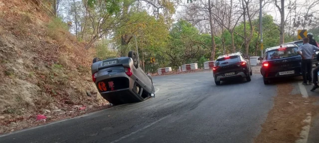 अचानक लगे हैंडब्रेक से पलटी कार