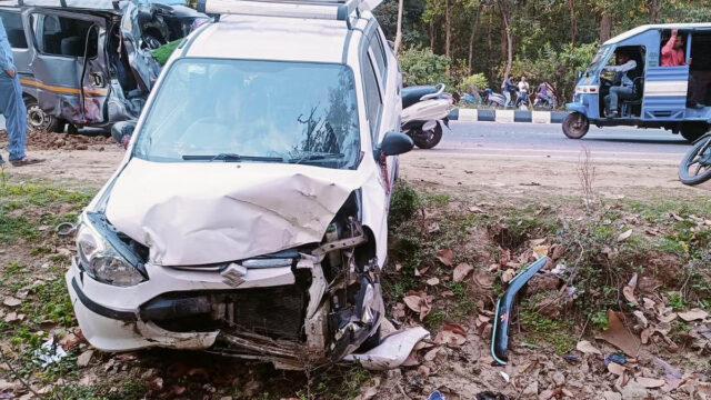 बुधवार सुबह तीन वाहनों के आपस में टकराए जाने से तीन लोगों की मौत हो गई। 108 एंबुलेंस की मदद से घायलों को दून अस्पताल भेजा गया है। दादेश्वर मंदिर से पहले तीन वाहन आपस में टकराने से दुर्घटना ग्रस्त हो गए। इनमें से एक वाहन में चालक सहित सात लोग सवार थे, जिनमे दो बच्चे तीन पुरुष और दो महिलाएं थीं।