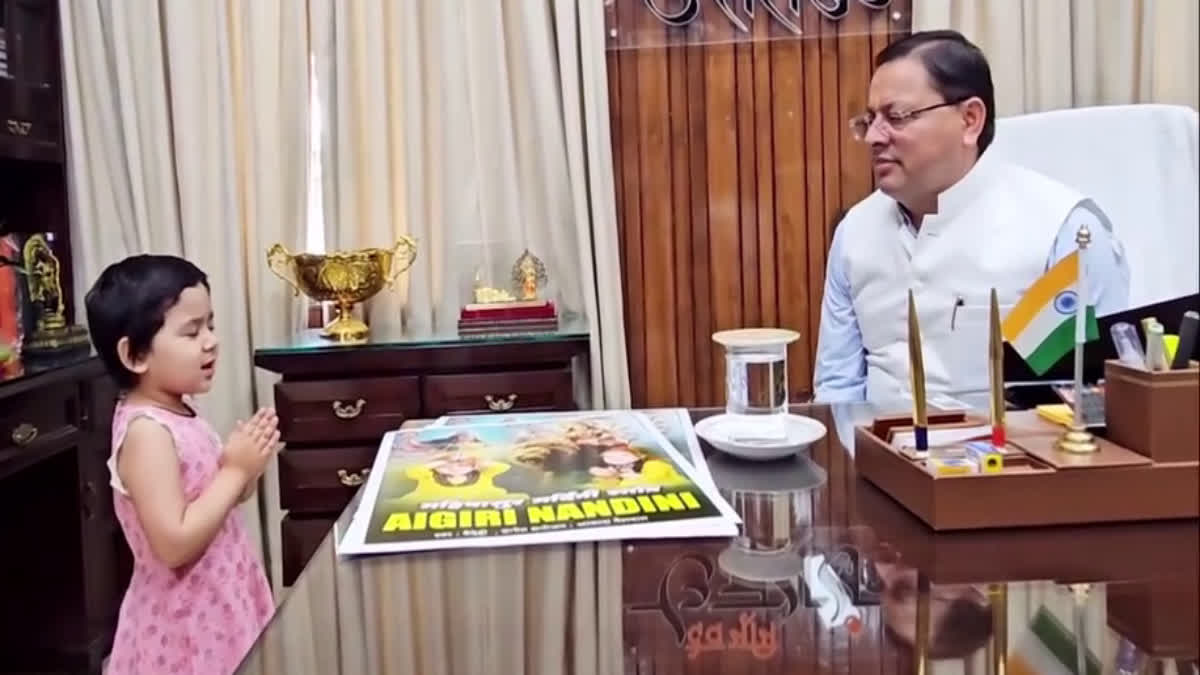 सीएम धामी के सामने महिषासुरमर्दिनि स्तोत्रम् गाने वाली बच्ची का वैदेही बताया जा रहा है। महिषासुरमर्दिनि स्तोत्रम् जो कि एक प्राचीन और पवित्र स्तोत्र है, जिसे आदि शंकराचार्य जी ने स्वयं लिखा था।इस स्तोत्र को सुनाने के बाद, वैदेही को मुख्यमंत्री जी से उपहार भी मिला और उन्होंने वैदेही को प्रधानमंत्री मोदी जी से मिलवाने का वादा भी किया।
