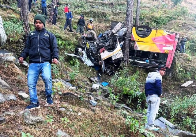 Uttarakhand News 13 Jan 2025: उत्तराखंड के पौड़ी में रविवार को दर्दनाक हादसा हो गया। पौड़ी-सत्यखाल मोटर मार्ग पर सवारियों से भरी एक मिनी बस अनियंत्रित होकर खाई में जा गिरी। हादसे छह यात्रियों की मौत हो गई। जबकि 22 घायलों को बेस अस्पताल श्रीनगर के लिए रेफर कर दिया गया है।